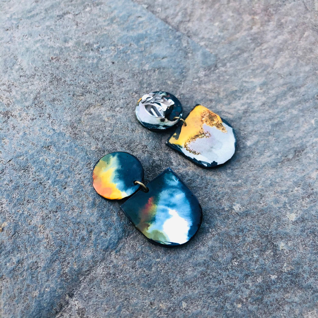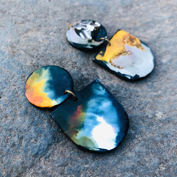 These abstract hand painted earrings were handmade from polymer clay and alcohol ink. From this listing you can also purchase a matching necklace.
