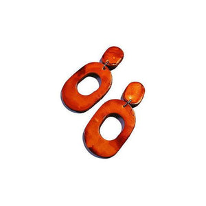 Burnt Orange Hoop Dangle Earrings Handmade from Clay & Painted- "Pam" - Sassy Sacha Jewelry