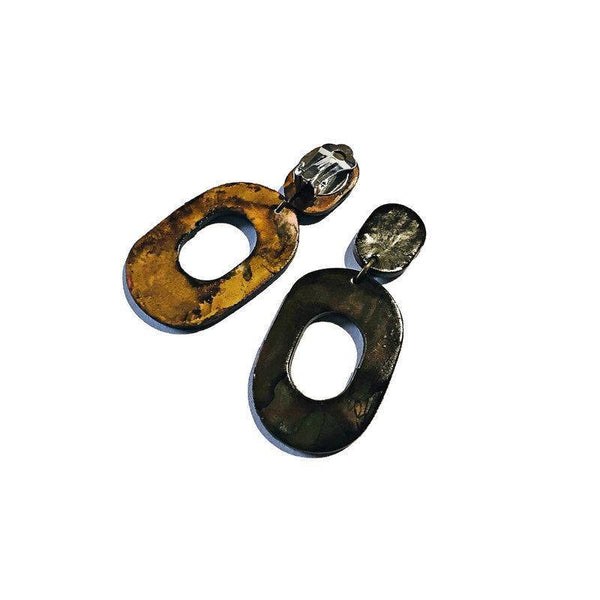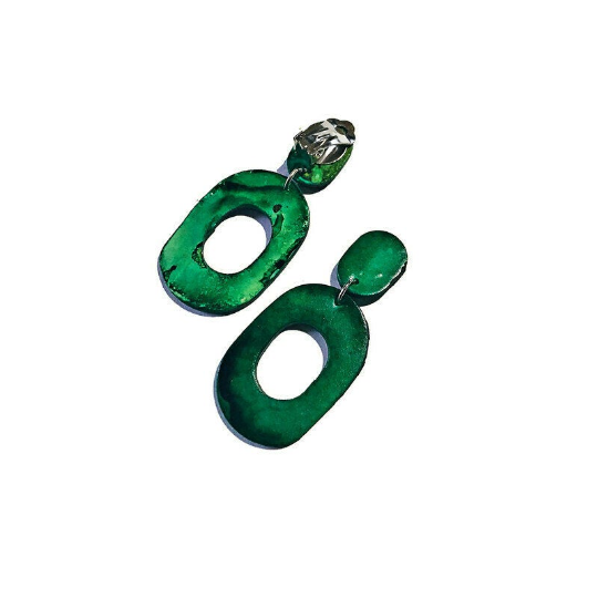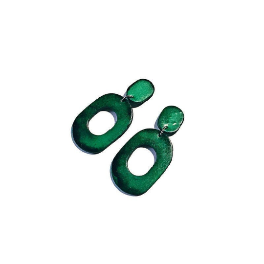 These statement earrings were handmade from polymer clay and hand painted with alcohol ink. They are super lightweight and fun to wear! These earrings can be purchased in multiple colors and as posts or clip ons.