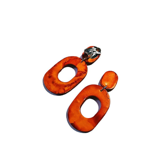 Burnt Orange Hoop Dangle Earrings Handmade from Clay & Painted- "Pam"