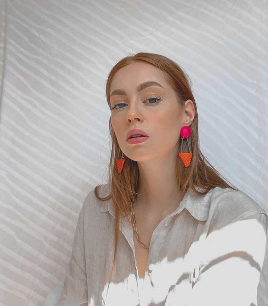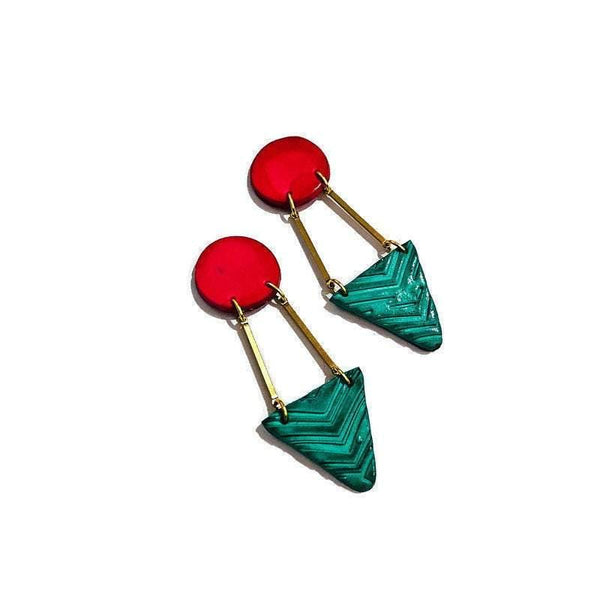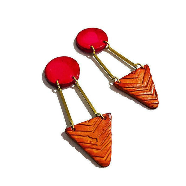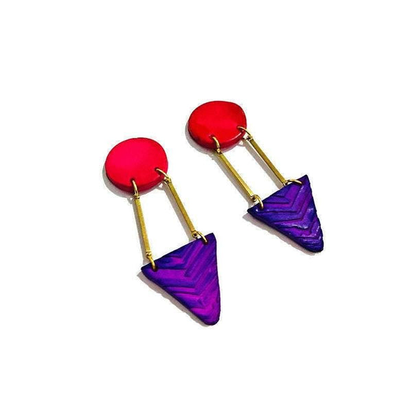 These long clay and brass earrings were handmade and painted in a bold pink and purple. They have a edgy modern style and are perfect for a woman who likes to make a statement with her accessories. From this listing you can purchase the earrings in multiple color schemes or choose a single color.