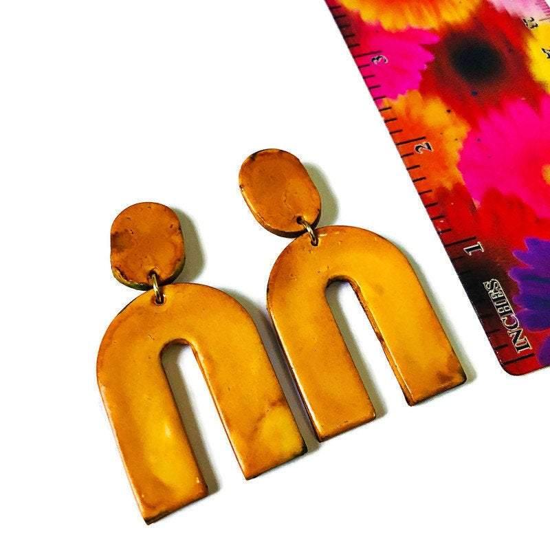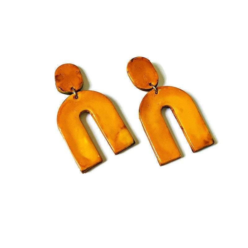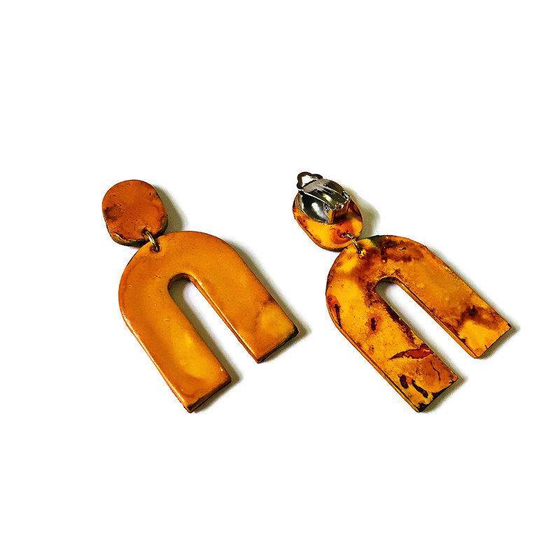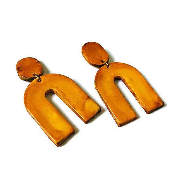 Mustard Yellow Arch Clip On Earrings Handmade- "Lucy"