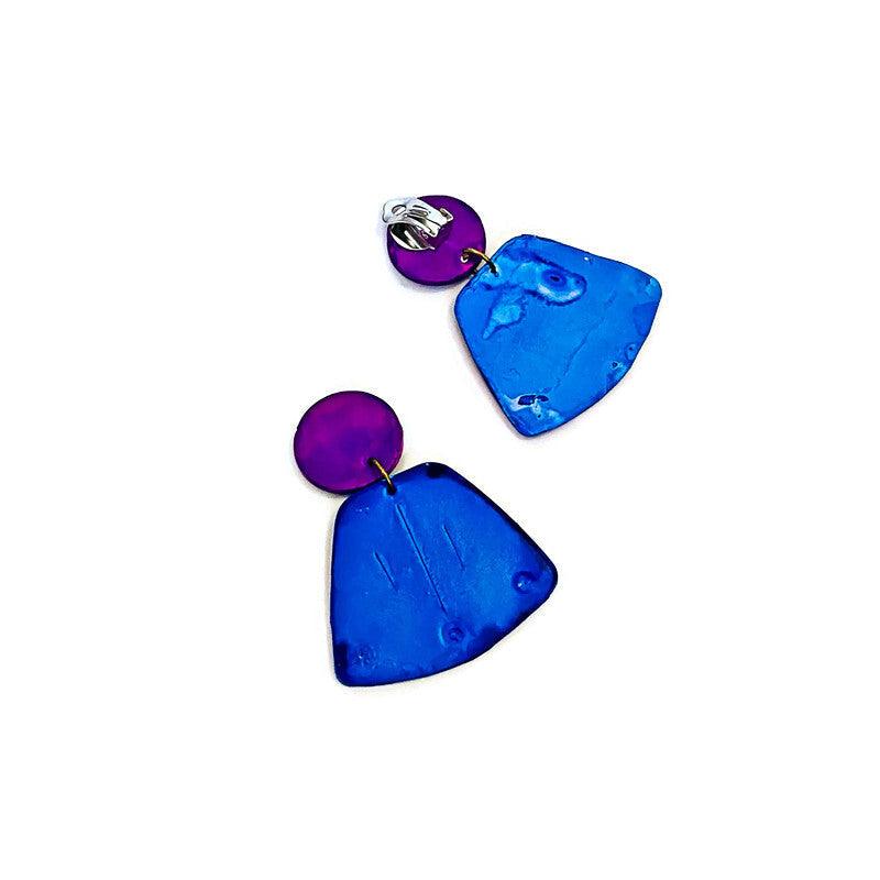 Blue & Purple Statement Earrings Post or Clip Ons - "Janet"