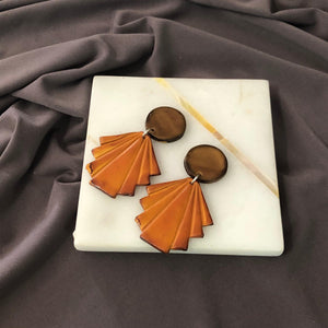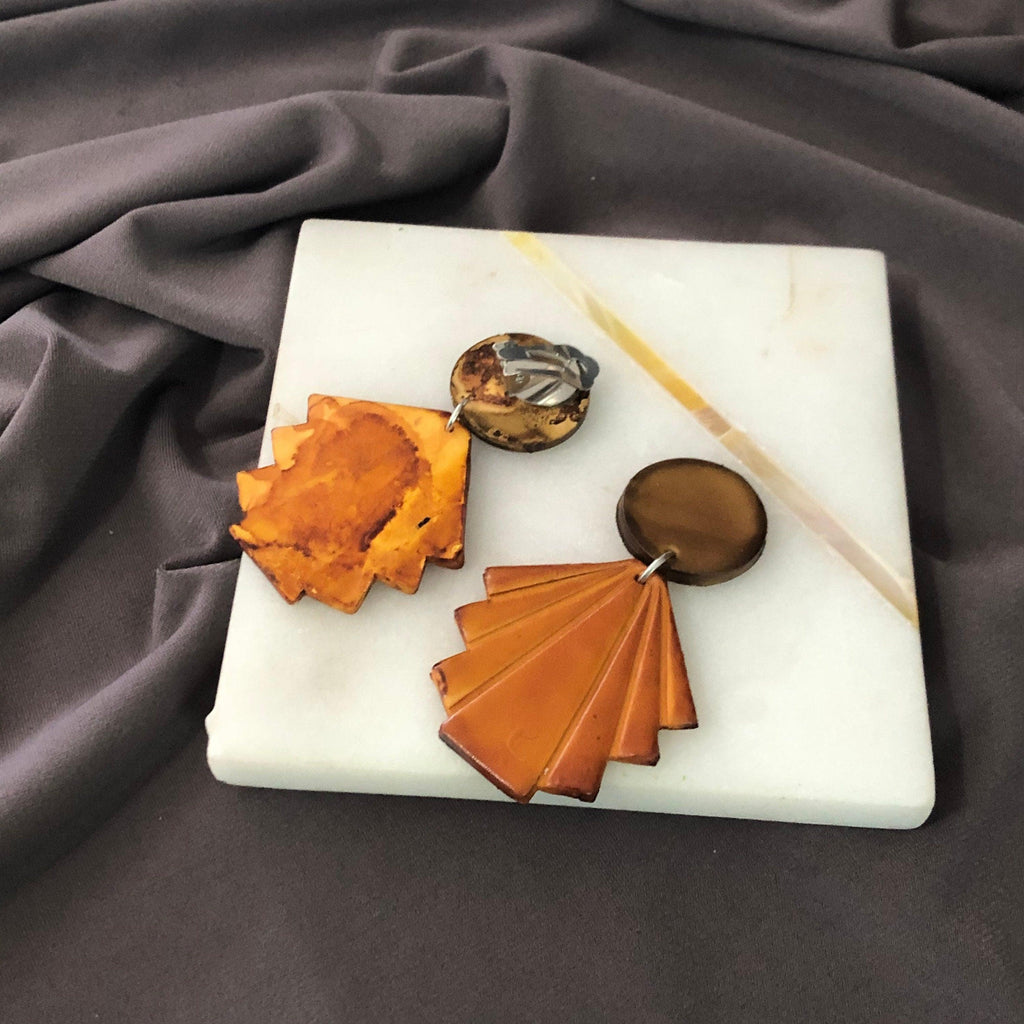 Large Clip On Earrings in Mustard Yellow & Brown - Sassy Sacha Jewelry