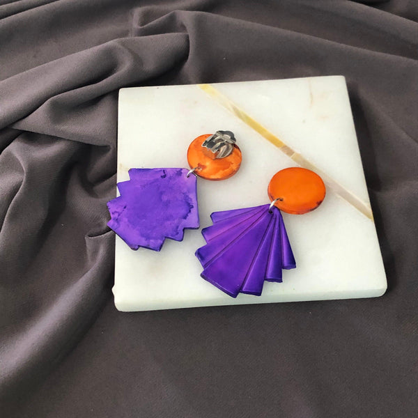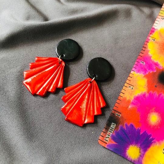 These large clip on earrings were handmade from polymer clay and hand painted with alcohol ink. They feature a stunning statement style and are lightweight and comfortable to wear.