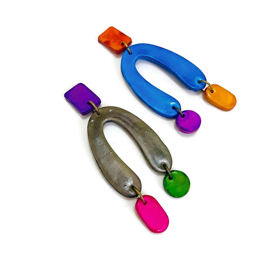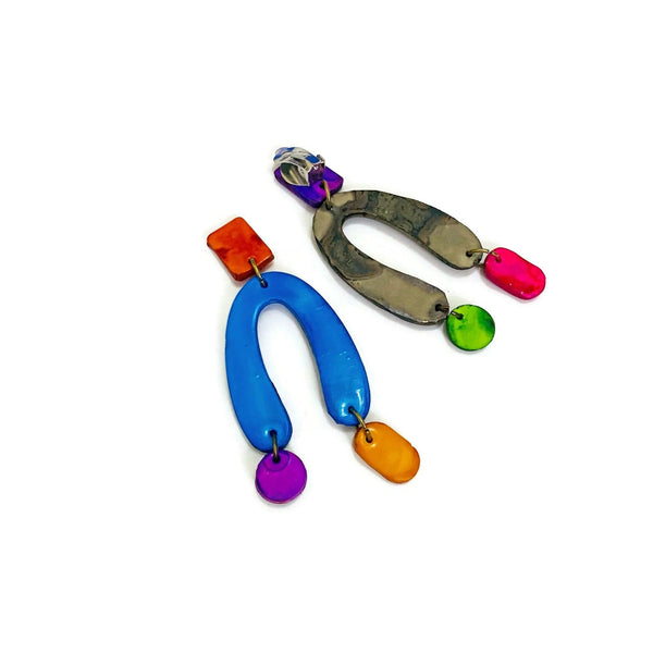 These mismatched arch clip on earrings were handmade from polymer clay and painted with alcohol ink. They are unique and stylish and bound to make a statement!