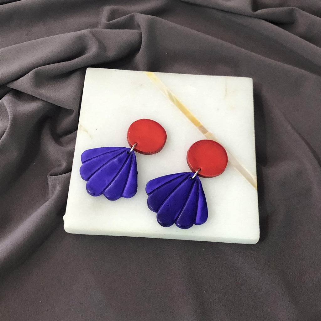 These colorful seashell statement earrings were handmade from polymer clay and hand painted with alcohol ink. They are super lightweight and fun to wear! These can be ordered in a number of different colors and as either post or clip ons.