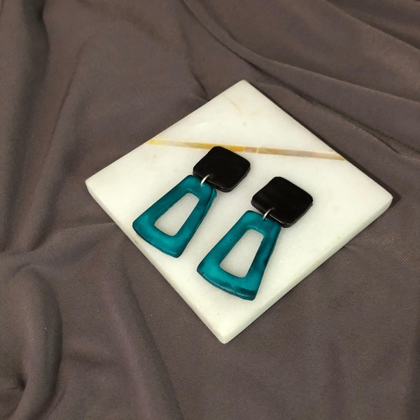 Black & Teal Art Deco Earrings, Open Rectangle Statement Earrings- "Ava" - Sassy Sacha Jewelry