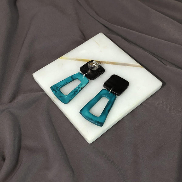 Black & Teal Art Deco Earrings, Open Rectangle Statement Earrings- "Ava"