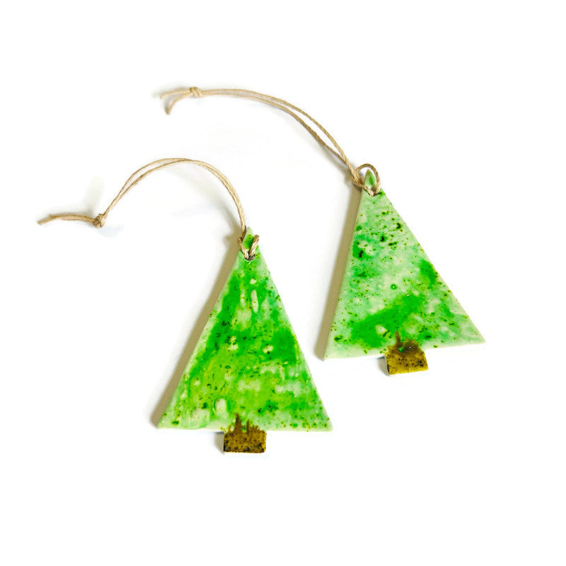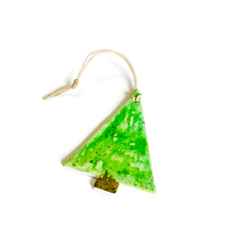 Celebrate the holiday spirit with this charming Christmas Tree Shaped Ornament! Handmade from clay and painted in a whimsical watercolor style, its vibrant green hues bring a playful touch to your festive décor. Perfect for adding a splash of handmade cheer to your tree or as a delightful gift that spreads joy all season long.