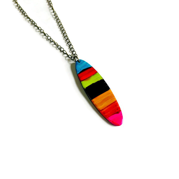 Add a splash of color to your look with this playful handmade pendant necklace. Featuring vibrant multicolor stripes, it’s a cheerful accessory that brightens any outfit. Lightweight and unique, it’s perfect for expressing your fun, creative side every day.