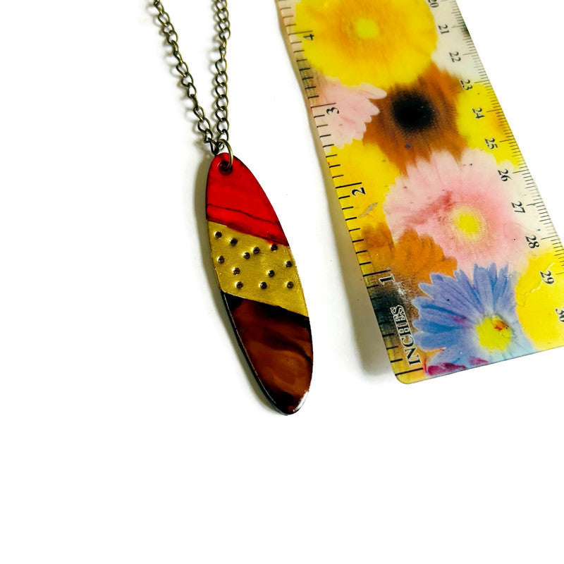 Add a splash of color to your everyday look with this playful oval striped pendant in warm red, gold, and brown tones. Handmade from clay and carefully painted, it’s perfect for casual beach days or adding a fun touch to any outfit. Designed for everyone, this unisex pendant brings a cheerful vibe wherever you go.