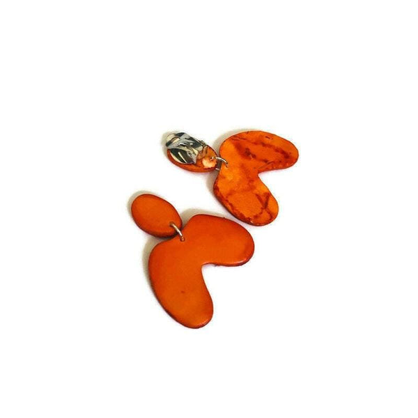 Red Asymmetric Arch Earrings, Bold Clay Earrings Hand Painted- "Kate"