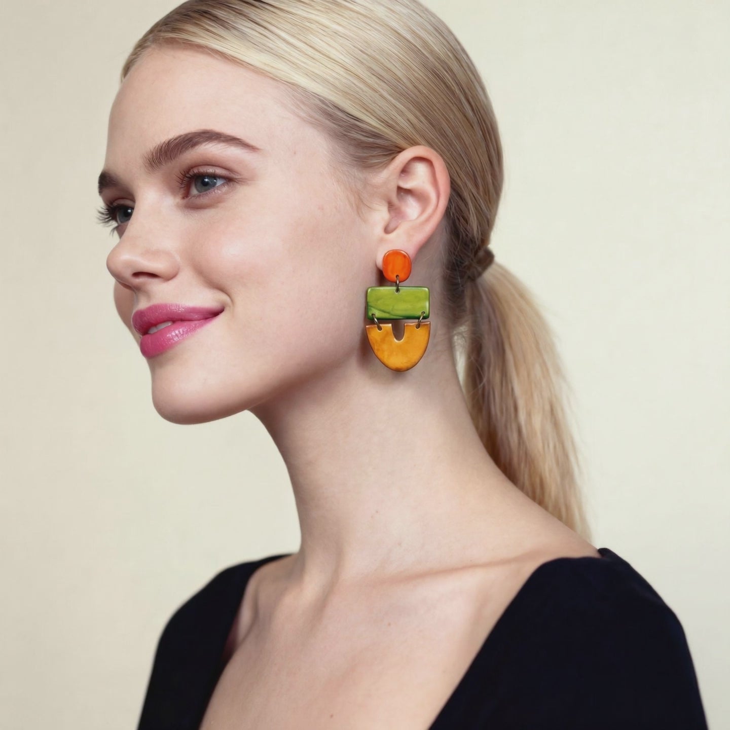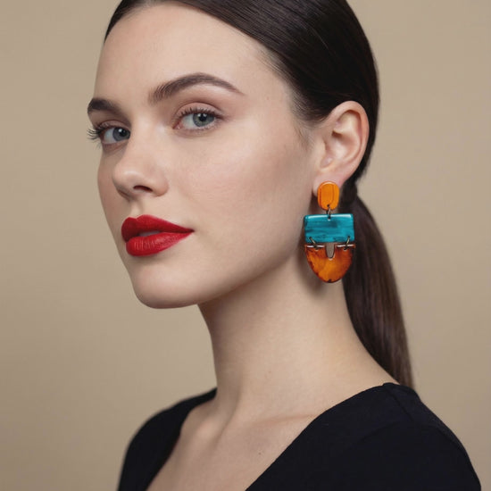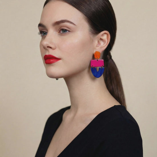 No piercing? No problem. These bold tri-tone clip on earrings are handmade from polymer clay and painted with alcohol ink — delivering serious statement style for non-pierced ears. Lightweight and comfortable to wear all day, with a vibrant finish that turns heads.